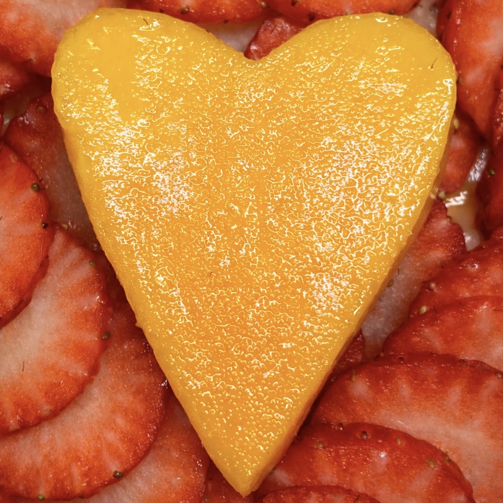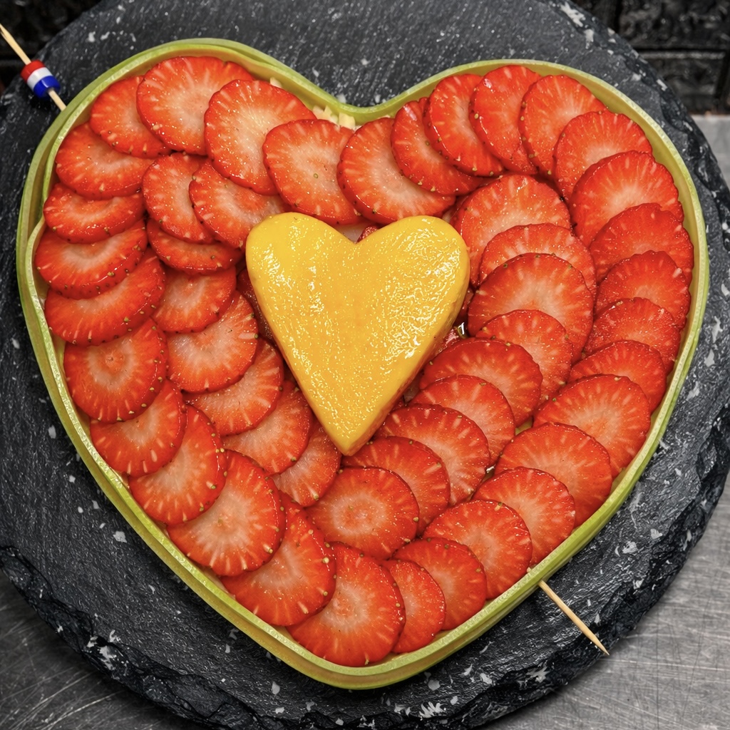 Succombez à la douceur d’un fraisier revisité en forme de cœur, spécialement imaginé pour célébrer l’amour.